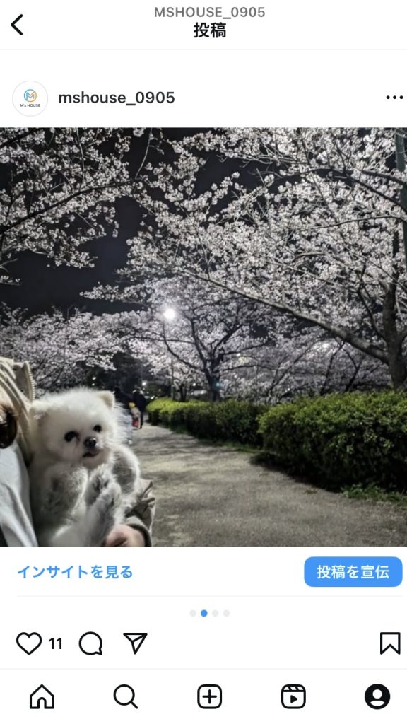 こんにちは☀️ M'sHOUSEです🌸 Screenshot 満開の週末、雨が降ってないうちに夜桜を見に行ってきました🌸✨✨ やっぱり桜は綺麗ですね😍 ぜひInstagramからご覧いただけるとうれしいです😊✨ \ 最新情報をチェック /